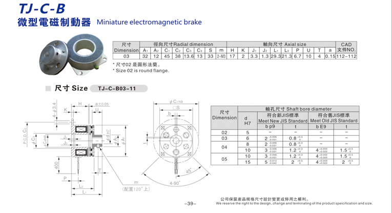 天機(jī)傳動微型電磁制動器亦是使用DC24V,其扭矩0.5Nm-5Nm稱之為微型扭矩。安裝法蘭可方形或者圓形但是4個安裝孔的尺寸不變(根據(jù)型號的大小變化)。微型電磁制動器定子通過法蘭安裝的型號,可以簡單地安裝到劈面/安裝板上。