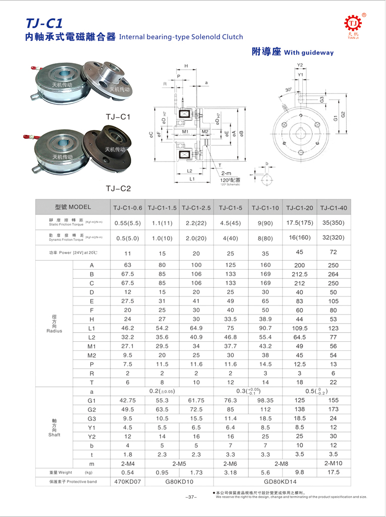 天機(jī)傳動(dòng)電磁離合制動(dòng)器標(biāo)準(zhǔn)附軸承導(dǎo)座TJ-C2型由銜鐵(電樞板)、定子、轉(zhuǎn)子、板型彈簧片、磁性線圈、來令片、軸承、鐵導(dǎo)座等元件構(gòu)成,統(tǒng)一使用DC24V,標(biāo)準(zhǔn)規(guī)格0.6-40KG。